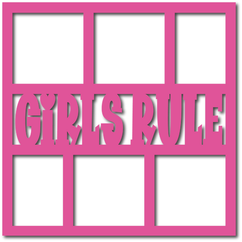 Girls Rule - 6 Square Frames - Scrapbook Page Overlay - Choose a Color
